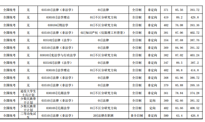 【035101】法律非法学 学制: 全日制3年 非全日制3年