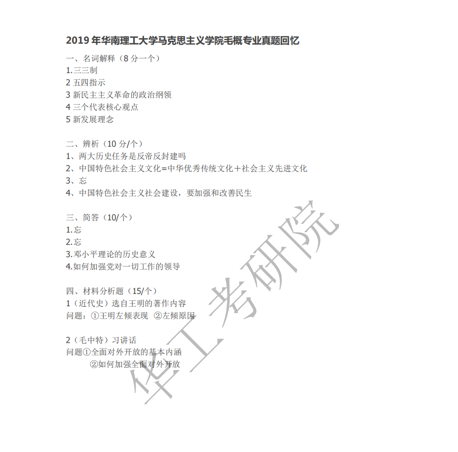今天我们首先看看【2019年华南理工大学马克思主义学院毛概专业真题】。欲想获取更多华工考研真题,可添加文末学姐微信,备注【真题】即可获取。