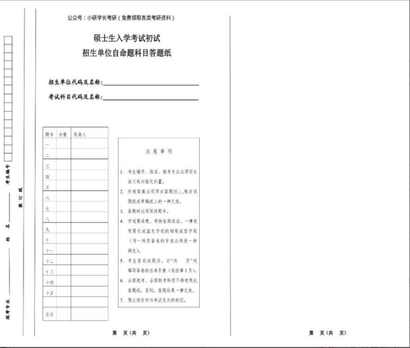 专业课: 第一页的报考信息填写规范(准考证上都有) 编页码 自己标题号答题,书写条理,有序作答 跳着作答非常容易漏题,最后一定要留3分钟左右对着题号一个一个检查 正反面作答 如果答错了位置,可以进行标注,不用划去。