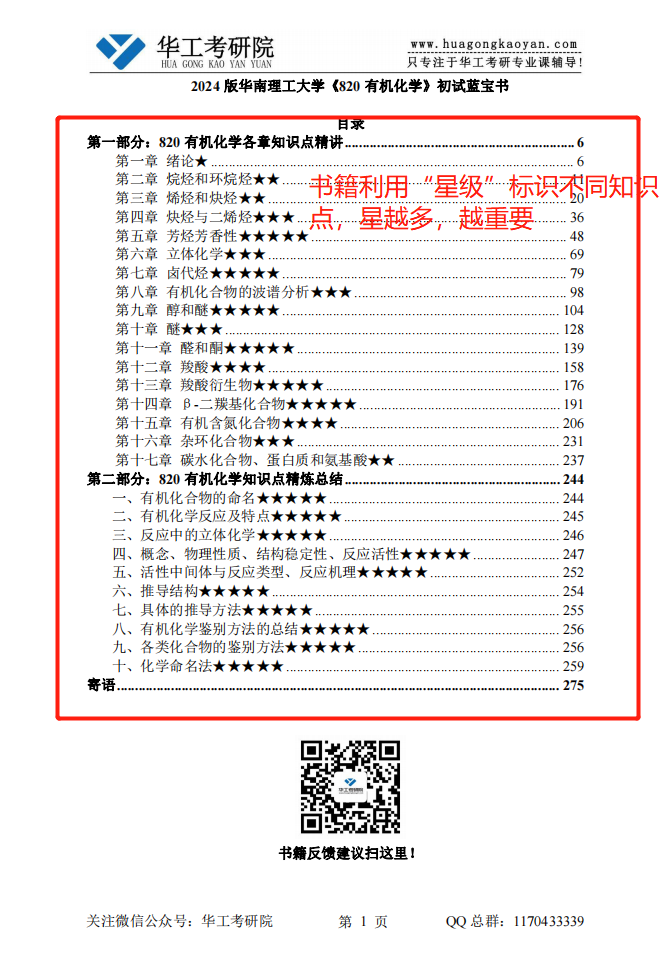 下图为蓝宝书的目录及部分内页内容展示。目录会星标出该专业学习重难点、考试方向、复习侧重点,帮助考生快速把握重要知识。最后附带真题+参考答案,帮助考生快速把握考试方向。 《820有机化学》专业知识笔记