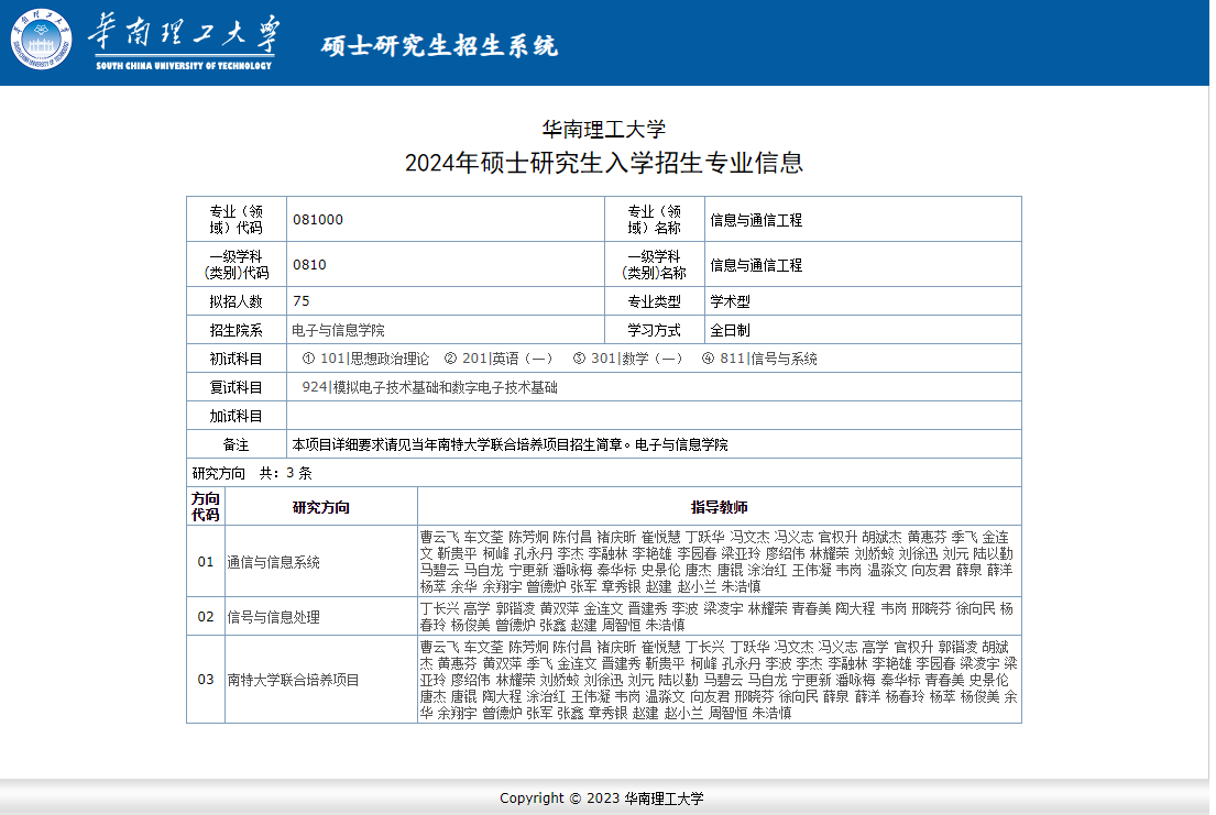 华南理工大学2024年硕士研究生入学
